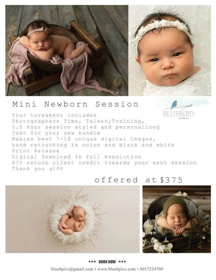 I specialize primarily in Newborn Photography and have a package for every budget below.
